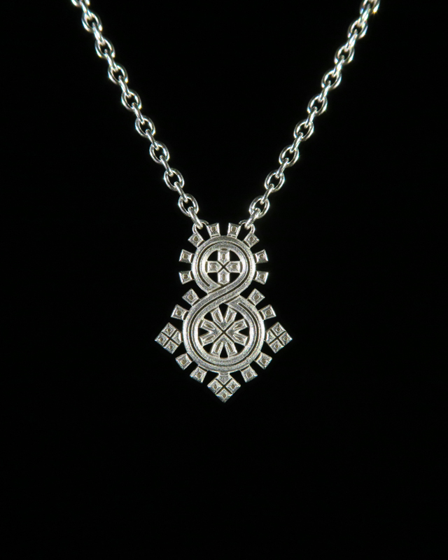 アフリカの地で数百年の時をかけ洗練された伝統的で魅惑的なエチオピアンクロスを、より幾何学的にリデザインし現代の製法で作り上げたペンダント。